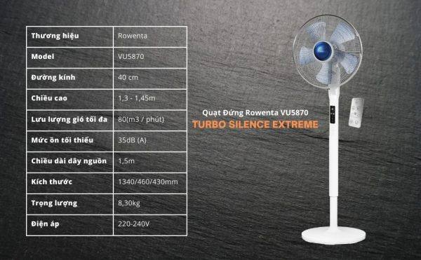 Quạt đứng Rowenta VU5870 mang đến khả năng làm mát cực mạnh lên đến 80m3/phút khi quạt ở cấp tốc độ lớn nhất. Với mức lưu lượng không khí cao như vậy có thể nói Rowenta VU5870 là chiếc quạt mạnh nhất từng được Rowenta thiết kế.