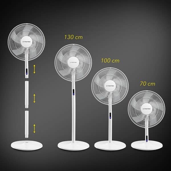 Thiết kế rất linh hoạt trong việc điều chỉnh chiều cao từ 70 đến 130 cm, quạt cây Trotec TVE 24S cũng có thể được sử dụng như một quạt đứng hoặc quạt bàn.